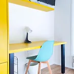 客房配备小厨房内的微波炉 和冷冻机,还有写字台,电视 和卫星频道平板电视. 公寓共有1间卧室,配有1间浴室,配备步入式淋浴间 和分开的洗手间.